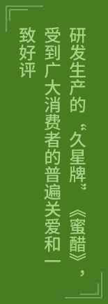 在繼承和發(fā)展中國(guó)幾千年來(lái)的飲食文化,不斷挖掘中華中醫(yī)養(yǎng)生學(xué)的瑰麗寶庫(kù),開(kāi)拓飲食保健的歷史進(jìn)程中。山西運(yùn)城市慶豐人,依靠先進(jìn)的科技進(jìn)步,發(fā)奮的創(chuàng)新精神,豐富的區(qū)位優(yōu)勢(shì)。創(chuàng)新研發(fā)出新一代保健飲品“久星牌”《蜜醋》。這是我國(guó)民營(yíng)企業(yè)發(fā)展史上一個(gè)重大創(chuàng)舉,隨著久星牌蜜醋的推廣應(yīng)用,將會(huì)是我國(guó)民眾的人體健康大幅度提高,人們的身體會(huì)更加健康。關(guān)愛(ài)社會(huì),關(guān)愛(ài)生命,這是山西運(yùn)城市慶豐農(nóng)業(yè)開(kāi)放有限公司的發(fā)展目標(biāo)、不懈追求和奉獻(xiàn)精神。